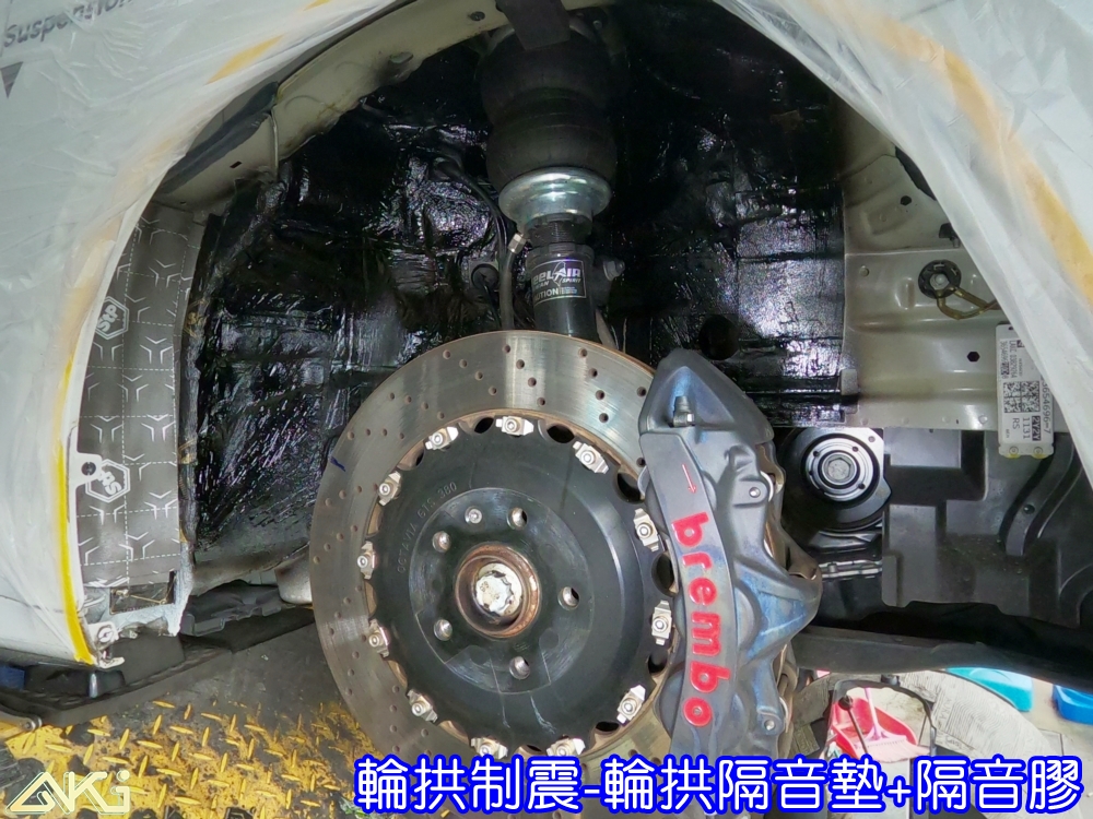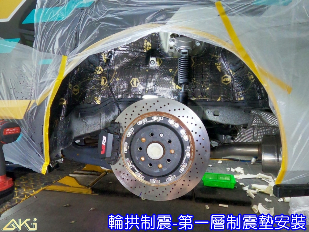 AKI 汽車隔音中心的四輪隔音工程採用「制震 + 吸音」雙層處理方式,可針對不同噪音問題達到最有效的改善。