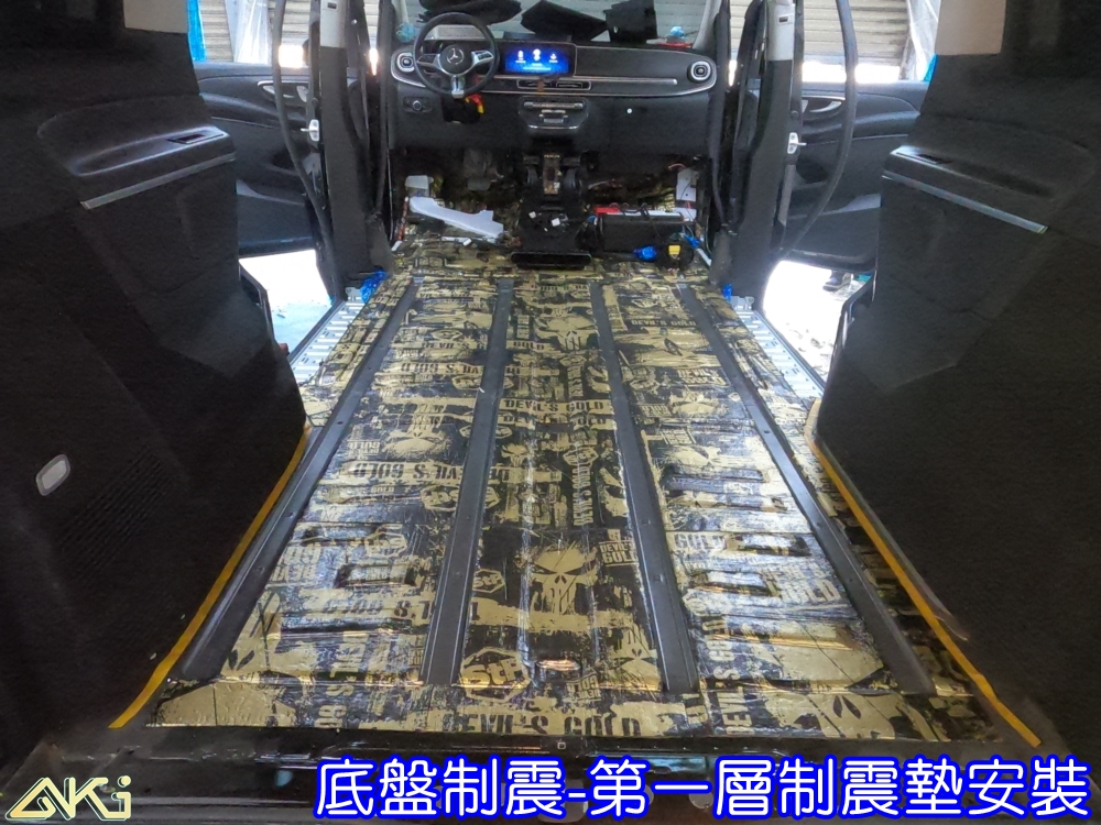 對於 BENZ W447 這類車型而言,車廂空間大、地板面積廣,若底盤金屬鈑件缺乏足夠制震與吸音層,聲音會在車廂內形成回音與共鳴,導致乘坐感下降。