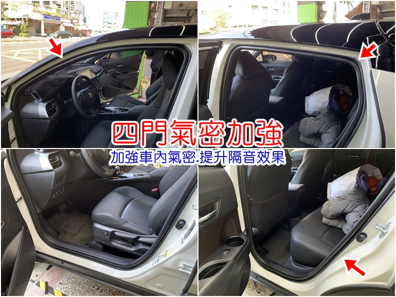 針對 TOYOTA C-HR 的風切聲問題,AKI 汽車隔音中心 規劃專屬的車門風切隔音膠條升級方案,核心概念在於「補強原廠氣密結構不足」,而非破壞或改變原車設計。