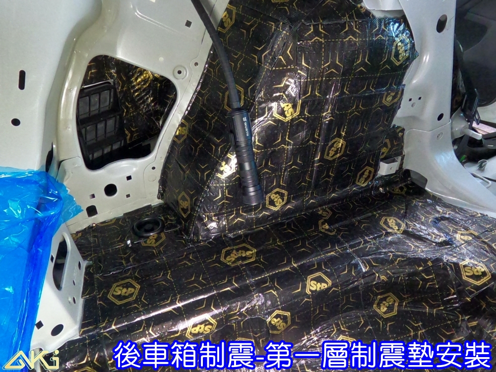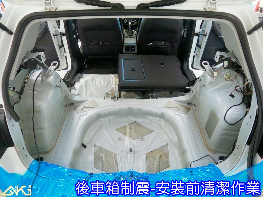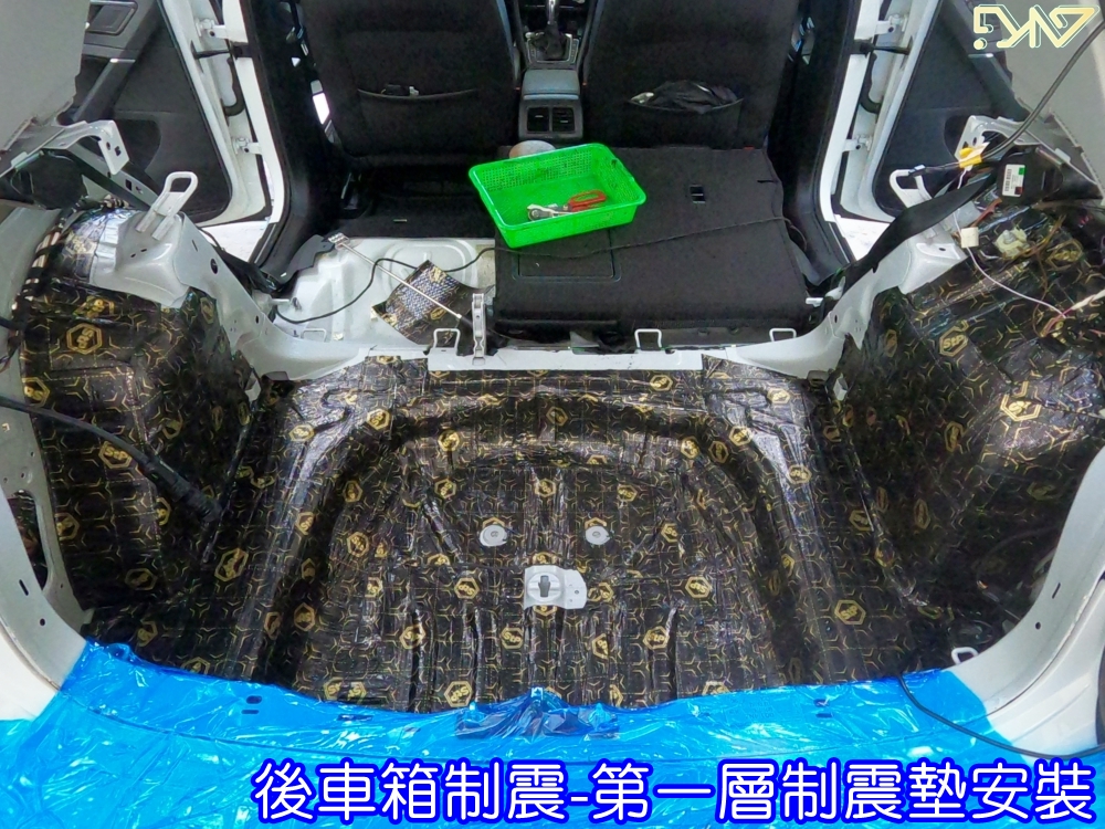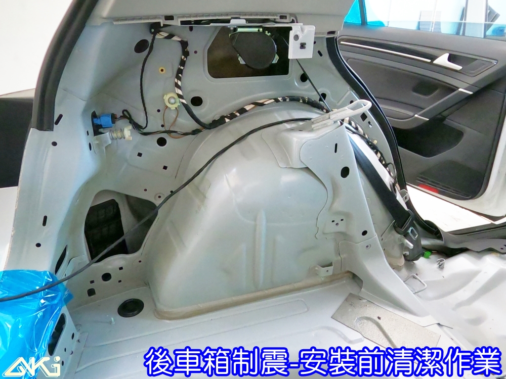 VW GOLF 7代 後備箱制震隔音 ;GOLF MK7 採用模組化平台設計,車體剛性與底盤反應相當優秀,但由於掀背車結構特性,後車箱空間與車室為半連通設計,使噪音更容易向前傳遞。後備箱區域金屬鈑件面積大、備胎槽結構深,當車輛行駛於粗糙路面或高速狀態下,來自輪胎、懸吊與排氣管的震動,容易在此區域形成低頻放大與共鳴現象。