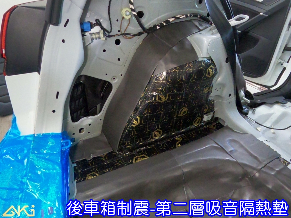 AKI 汽車隔音中心在規劃 VW GOLF 7代後備箱制震隔音時,核心概念在於「降低鈑件震動+吸收多餘聲能」,透過制震與吸音材料的相互搭配,達到全面抑制共鳴的效果。